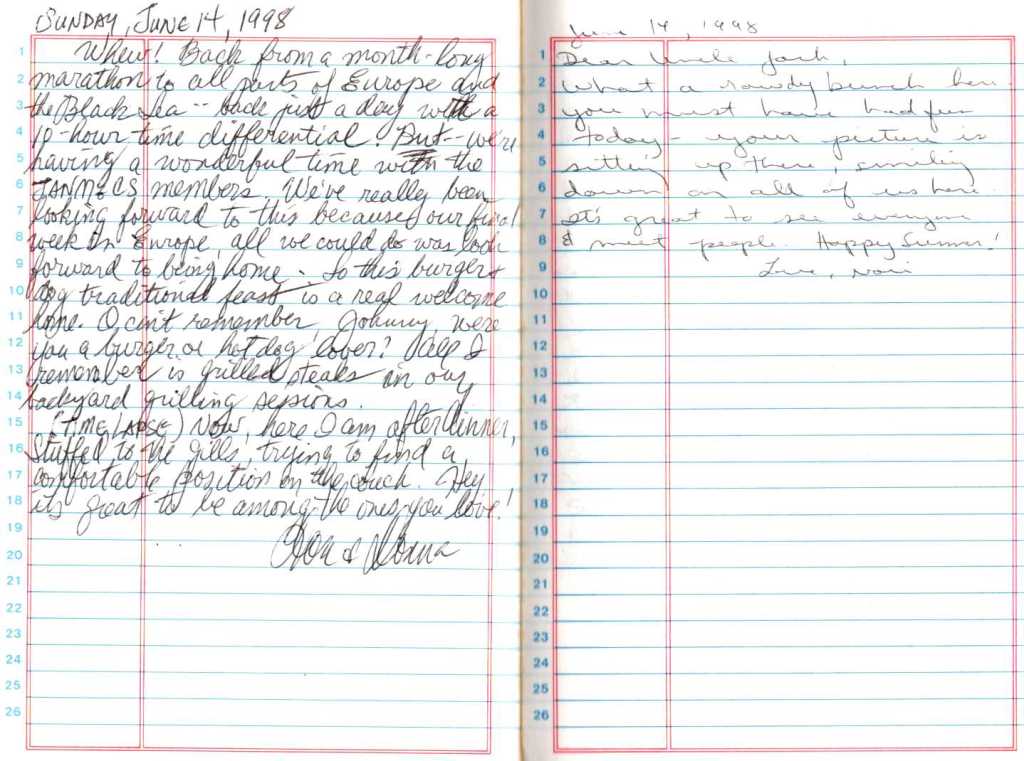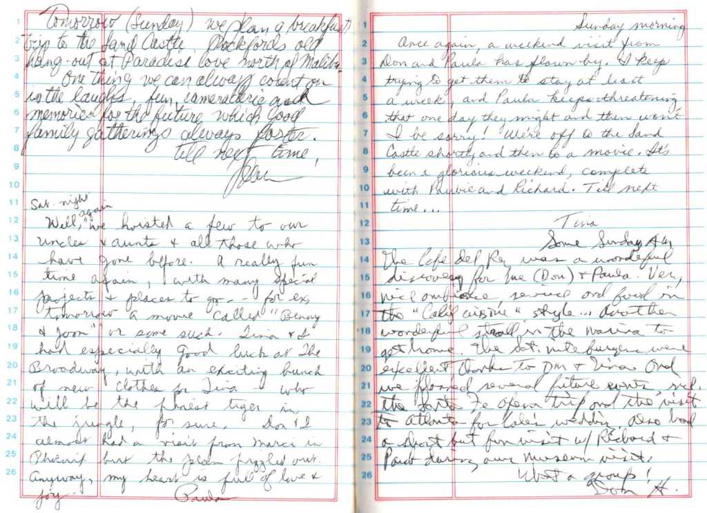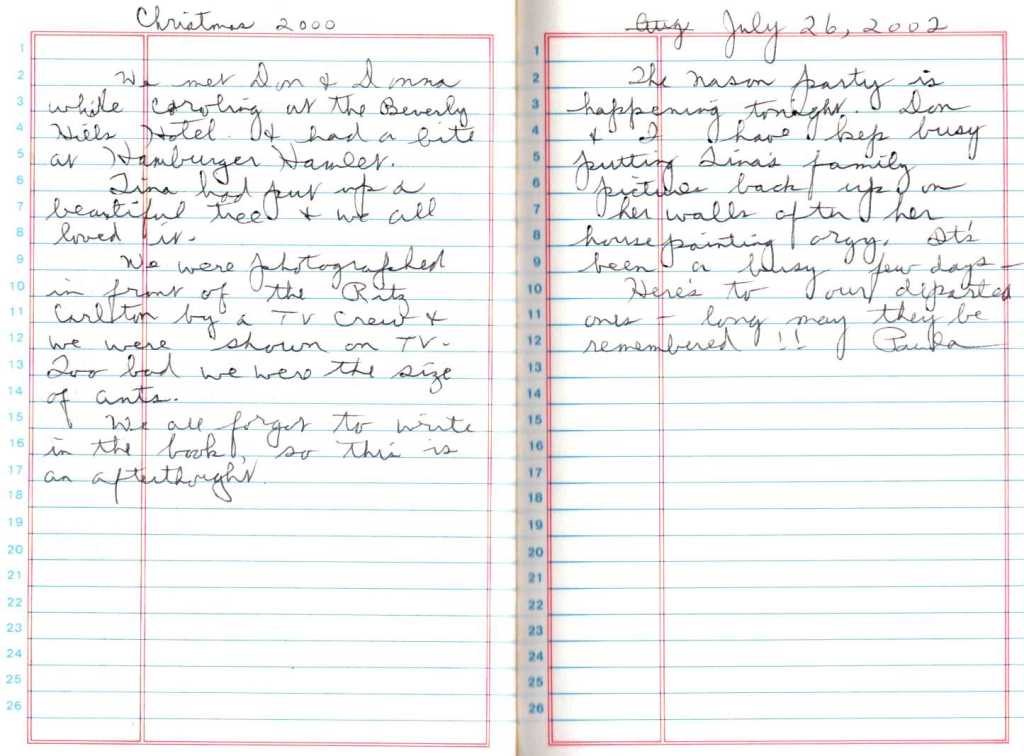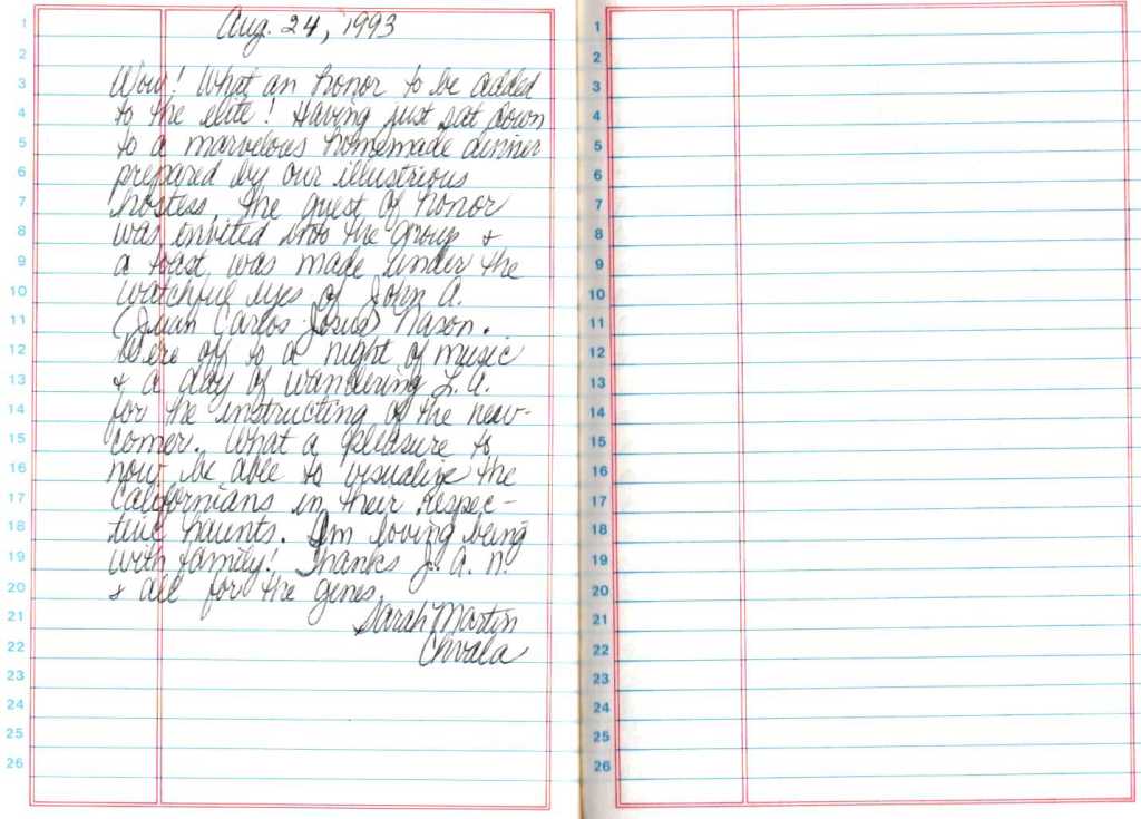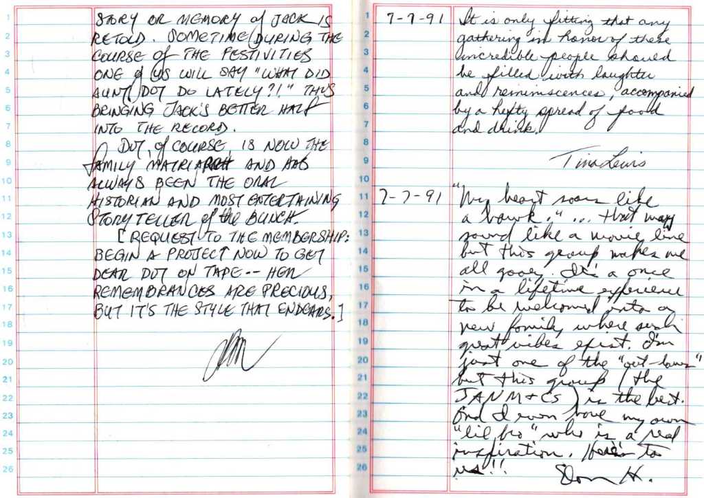 On July 7, 1991, in my apartment in Marina del Rey, Don Martin, Tina Lewis, Don Hassler, and Paula Hassler, signed as charter members of the John A. Nason Marching & Chowder Society. The first meeting was held in memory of Bill Irving, Jack Nason, Melvin Leahy, Ella Runge, Warren Taylor, Martin Runge, Martha Martin, Marie Leahy, Merwin Martin. I’m not sure why they were listed in that order; perhaps in the order of when they died.